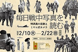 2026.2.10(火) ~ 2.22(日) 毎日新聞大阪本社には日中・太平洋戦争中に特派員が撮影した約6万枚の「戦中写真」が保管されています。終戦時に軍が出した焼却命令に反して残された写真には、戦闘だけでなく兵士の日常や従軍動物、占領地の人々の暮らしなど、戦争の多様な側面が記録されています。この貴重な写真を後生に伝えるべく、大阪毎日新聞社京都支局として98年前に建設された「1928ビル」内「同時代ギャラリー」で写真展を開催します。記者たちの息遣いの残る空間で特派員の足跡を辿るとともに、京都で開発された「ミヤニ式反射望遠カメラ」にまつわる写真も展示します。会期後半には2022年から共同研究を進めてきた東京大学大学院・渡邊英徳教授がカラー化した「戦争と動物」「戦争と女性・子ども」シリーズもご覧いただきます。 <ギャラリートーク>