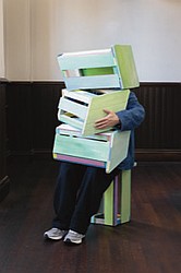 2025.11.20(木)〜 2026.2.27(金) 2025年に開設25周年を迎えた京都芸術センターの館内各所に、森太三のカラフルに着彩された木端による椅子やベンチを約1年の期間、仮に置いてみます。森は粘土を丸めたり、紙を切ったり、木材を小さく切ったりしたものを寄せ集めることで、大きな作品を制作してきたアーティストで、2001年に京都芸術センターが開催した初めての公募展「Amorphous “I”アモルファスアイ/不定形の〈私〉」(2001年2月4日-27日)の出品作家です。 25年の時を経て京都芸術センターに帰ってきた森の作品から、どのような風景が見えてくるでしょうか。 京都芸術センターに来られた際には、ぜひ腰掛けてみてください。 2025年11月20日からは第2幕として、写真家・麥生田兵吾が捉えた「ここに仮に置いてみる」の記録写真を合わせて展示します。館内各所に佇み、人の訪いを静かに待つ椅子たちが、人が現れることで動き出す…。「ここに仮に置いてみる」の新たな一面をご覧ください。 |